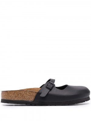 Модель без застежки, боковые застежки с пряжками, закругленный носок и ребристая резиновая подошва. Цвет: черный.