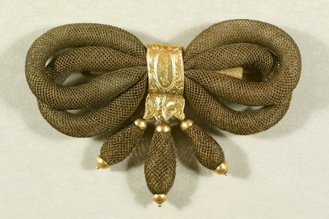 Пик моды на “волосяные” украшения в Европе пришёлся на время правления королевы Виктории. Поначалу их использовали главным образом как траурные украшения, и это были единственные украшения, позволявшиеся на время одно- двухлетнего траура. Однако вскоре украшения из волос стали носить и те, кто не был в трауре. Появились особые мастера по такому типу украшений, которые могли создать любой дизайн на ваш вкус – броши, браслеты, серьги, кольца. Многие же женские журналы печатали подробные инструкции для желающих смастерить что-то самостоятельно дома.