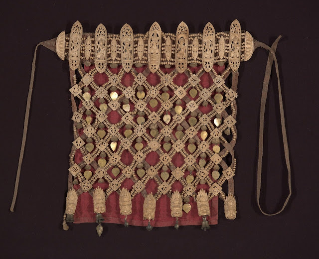 Этот фартук – прекрасный пример использования тибетцами человеческих костей в ритуальном костюме. Он одевался с сочетающимися шляпой, нагрудником, браслетами на руки и ноги. Такой костюм использовался во время религиозных церемоний и танцев в тантрическом буддизме.