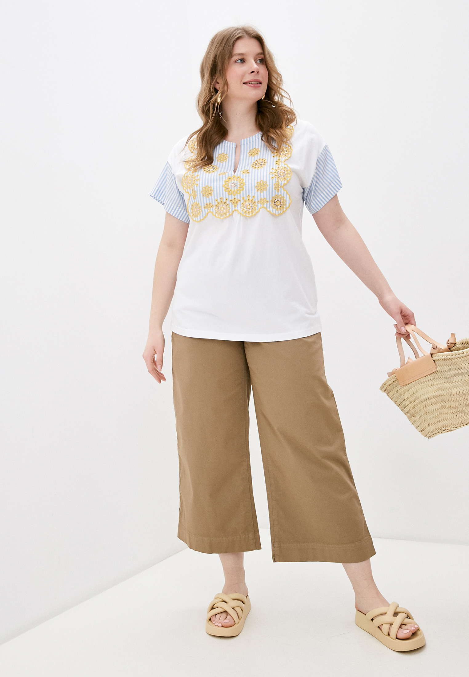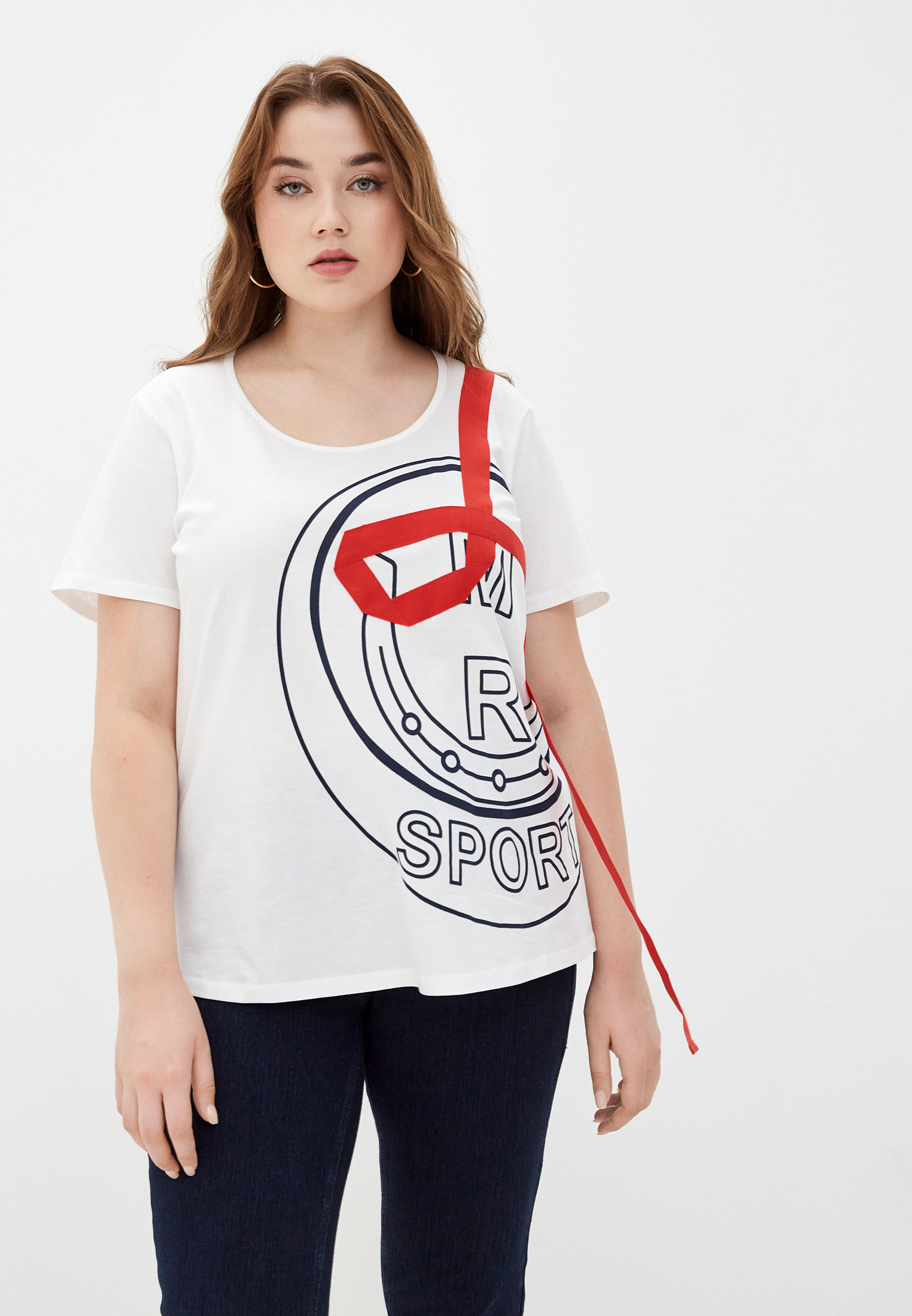 Футболка Marina Rinaldi Sport. Цвет: белый. Сезон: Весна-лето 2021.