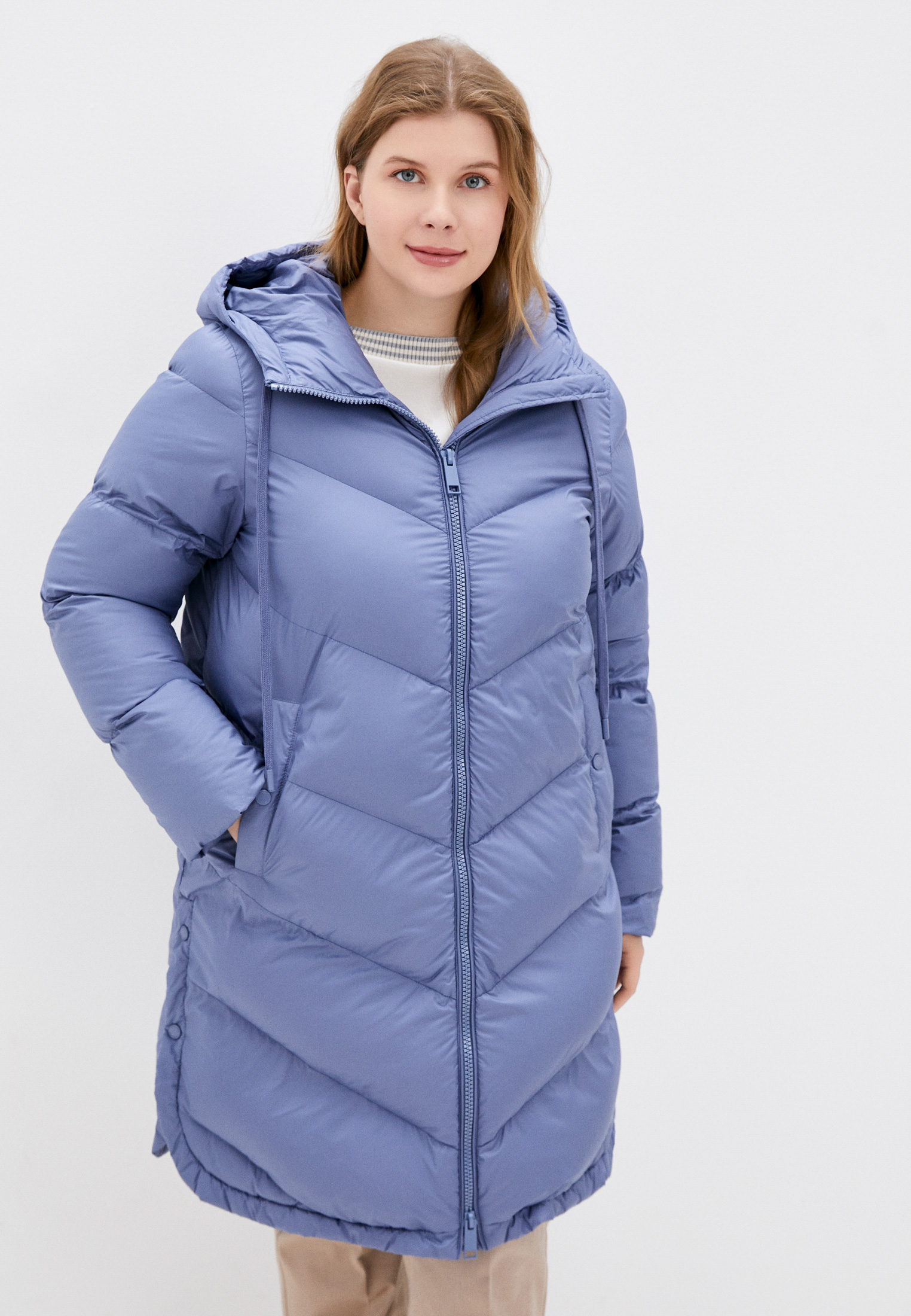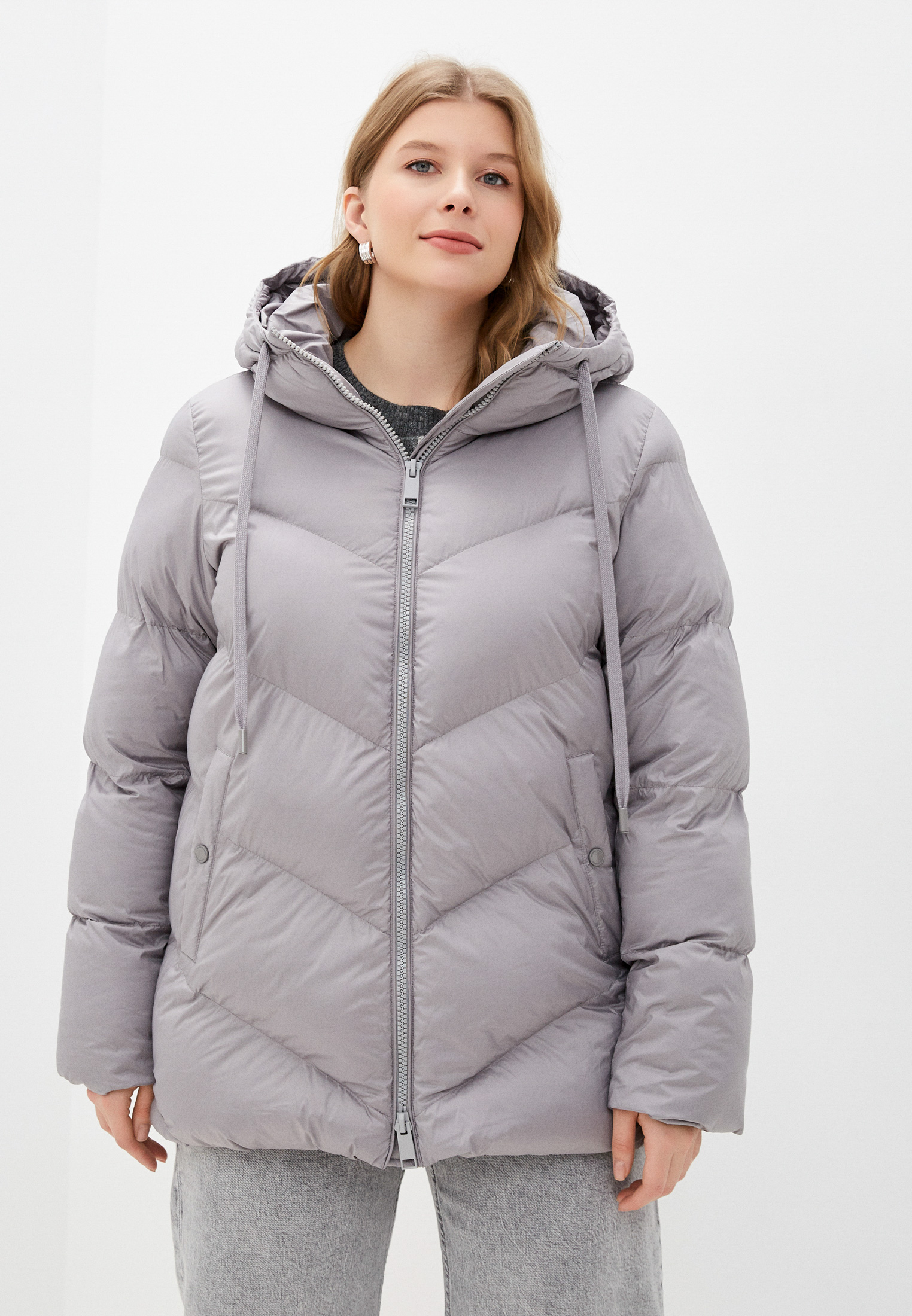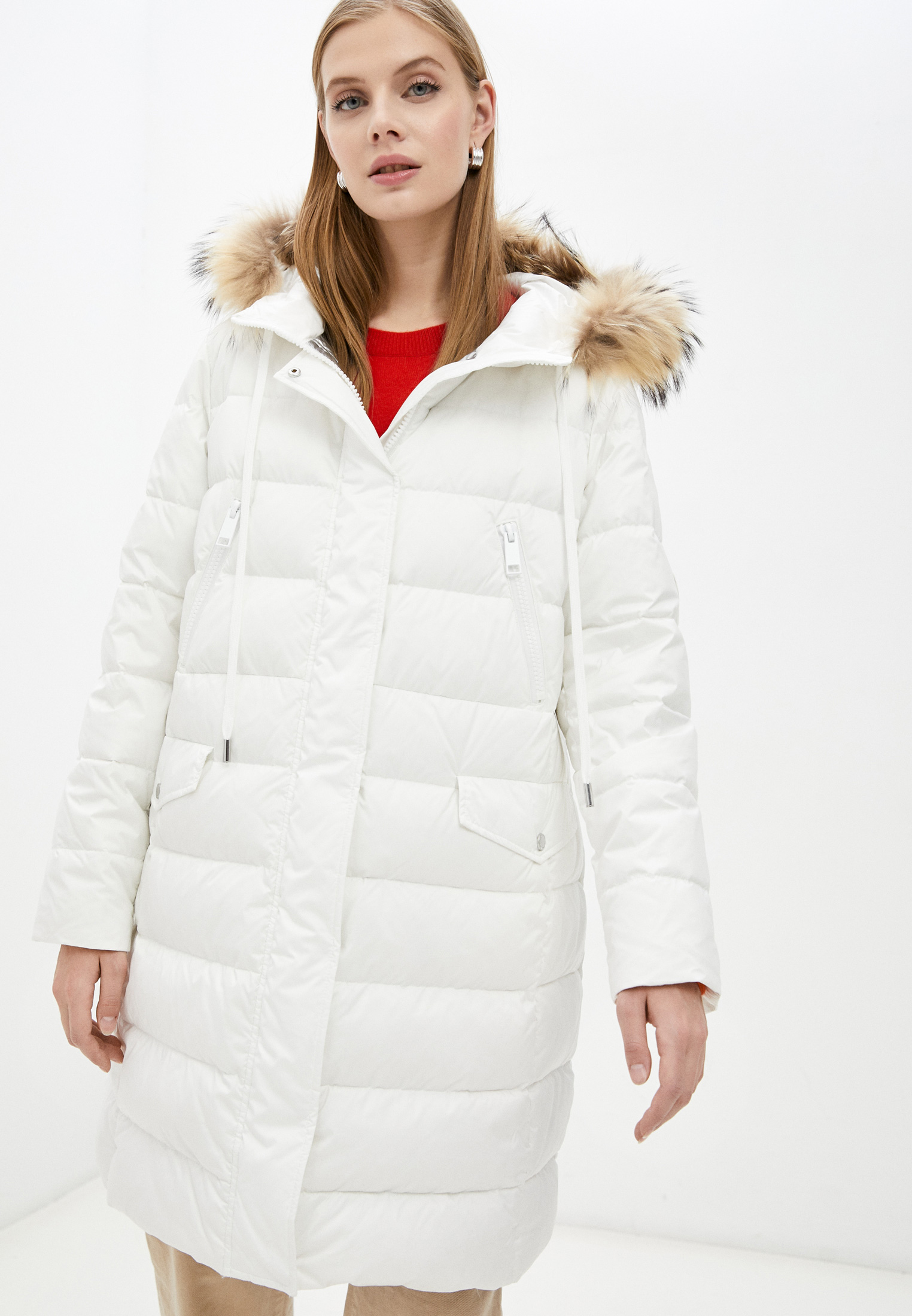 Пуховик выполнен из ветрозащитного текстиля с натуральным наполнителем. Модель прямого кроя. Особенности: застежка на молнии.