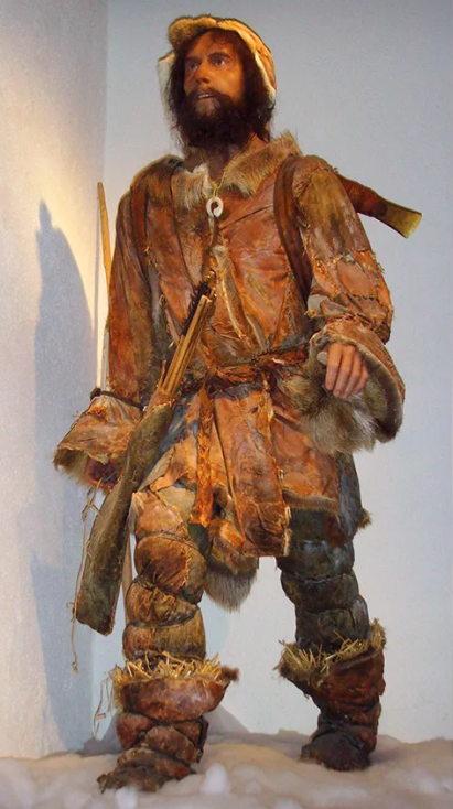 Но иногда археологам везет. Так, в 1991 году в Альпах была найдена ледяная мумия человека, которому не повезло и он 3 300 лет до н.э. замерз в горах. Историки дали данному человеку имя Эци. Замерзшей была и его одежда. Таким образом, ученые смогли восстановить одежду, которую носили люди 3 300 лет до н.э.