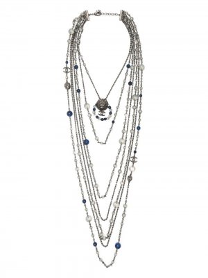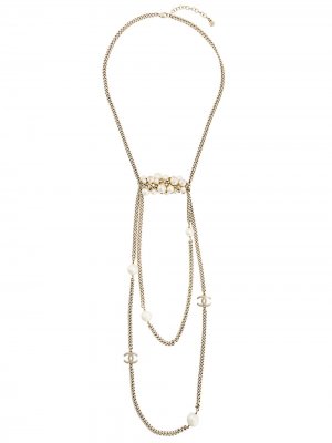 Декор из искусственного жемчуга, логотип CC, подвеска с логотипом, кубинская цепочка, многослойный дизайн и застежка-карабин. Обратите внимание, что это товар с историей. Несмотря на отличное состояние.