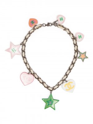 Тонкая цепочка, логотип CC, украшения из горного хрусталя и застежка-карабин. Цвет: черный. Обратите внимание, что это товар с историей. Несмотря на отличное состояние, он может иметь незначительные дефекты.