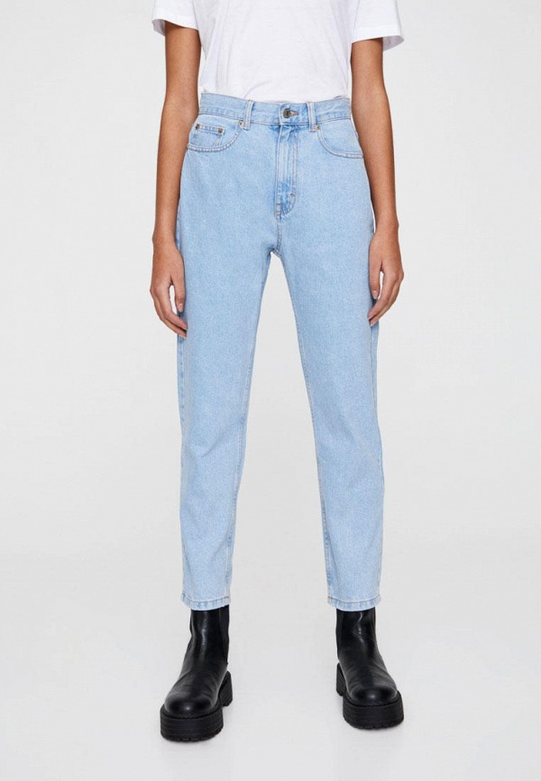 Надень прямые джинсы с высокой талией в светлом оттенке.