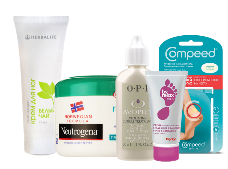 Большинство средств, предназначенных для ухода за сухой кожей ног, довольно универсальны и подходят всем без исключения. В отличие от кожи лица, которая может быть сухой, жирной или комбинированной, кожа ступней всегда склонна к сухости в разной степени, и потому увлажняющие средства подходят всем либо для решения существующих проблем, либо для профилактики. Существуют средства, которые необходимо использовать ежедневно, и средства, которые используются раз в несколько дней или даже недель как вспомогательные средства для маникюра.