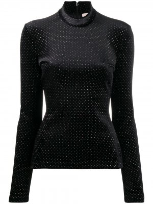 Черный топ из весенне-летней коллекции 2021 года станет идеальным завершением коктейльного образа. Кристофер Кейн украсил модель крупными прозрачными кристаллами, которые имитируют колье. А воротник, будто.
