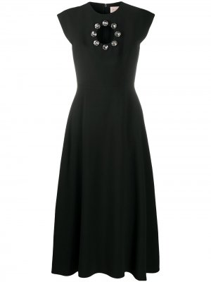 Розовое платье из шёлкового микса с цветочной вышивкой от Christopher Kane. Круглый вырез, дизайн без рукавов, застёжка на молнии сзади, волнистый подол.