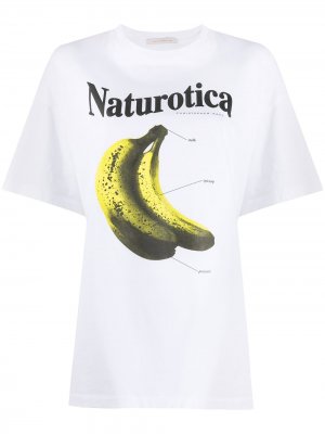 Круглый вырез, короткие рукава, принт с логотипом, свободный крой и прямой подол. Цвет: белый.