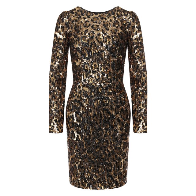 Увидев эту роскошную модель платья с пайетками с оригинальными рукавами, что оформлены воланами с звериным принтом, мы были поражены, как неординарно могут сочетаться блестки и оригинальные орнаменты.