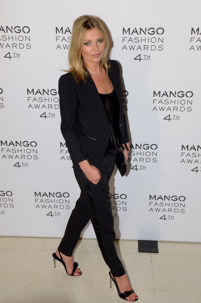 Но и про красные дорожки Кейт не забывала. На мероприятиях модель не изменяла своему стилю и продолжала носить блестящие платья. А чуть позже Мосс полюбила приталенные пиджаки и кожу, выбирая брюки и платья длины миди в таком стиле.
