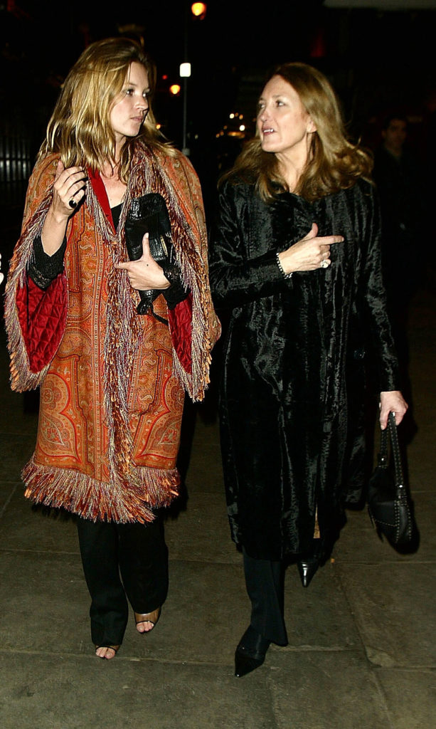 В 1998 году Кейт расстается с Джонни Деппом, а вместе с этим на смену байкерскому стилю приходит блестящий шик. Мосс все чаще надевает платья с пайетками (даже появляется в парных аутфитах с Наоми Кэмпбелл) и не упускает возможности лишний раз добавить в образ любимую шубу.