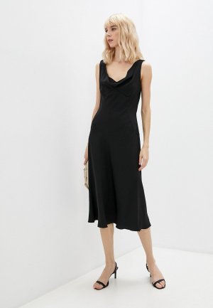 Без рукавов, U-образный вырез и драпированная юбка. Цвет: черный.