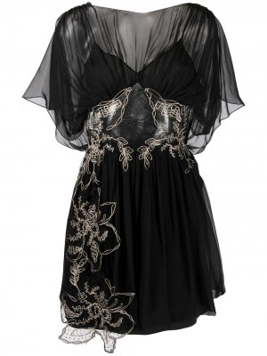 Многослойный дизайн, расклешенный крой, открытая спина и короткие рукава с драпировкой. Цвет: черный.
