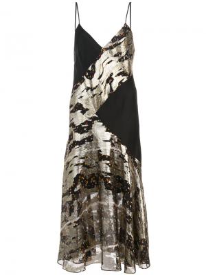 Золотисто-черное узорчатое платье из шелкового микса на тонких бретелях от Prabal Gurung.