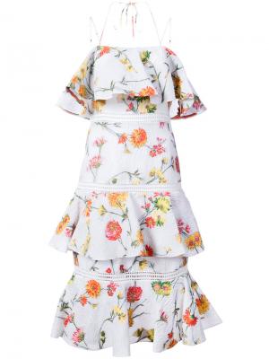 Белое платье из шелкового микса с цветочным принтом от Prabal Gurung.