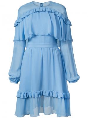 Шелковое платье Prabal Gurung с многоуровневыми оборками, подчеркивающими мягкий изящный образ. V-образный вырез. Молния сбоку. На подкладке