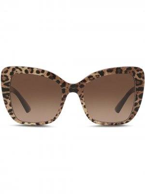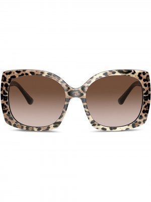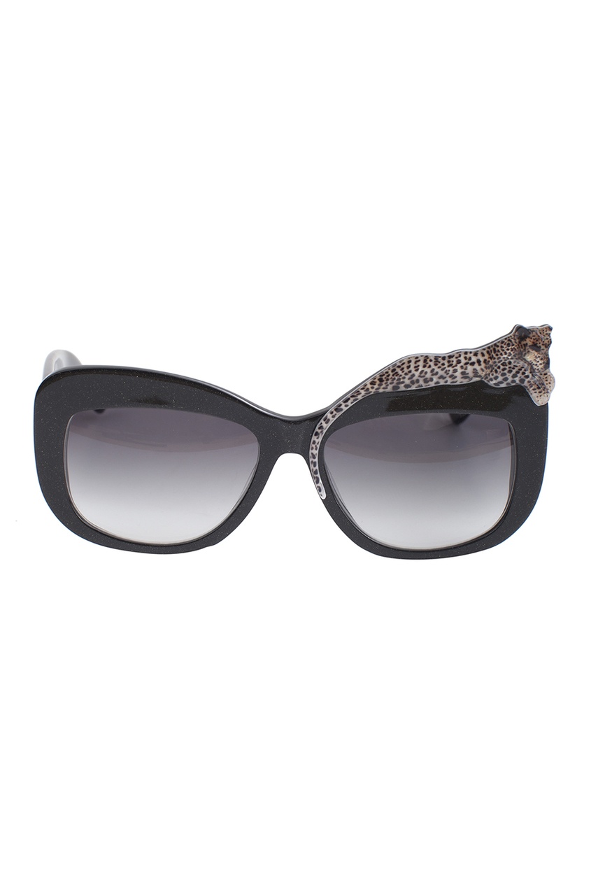 Леопардовый мотив — один из любимых спецэффектов Доменико Дольче и Стефано Габбаны, который нашел отражение и в этих крупных солнцезащитных очках. Знаковым принтом украсили затемненные линзы, не искажающие восприятие предметов. У аксессуара из л.