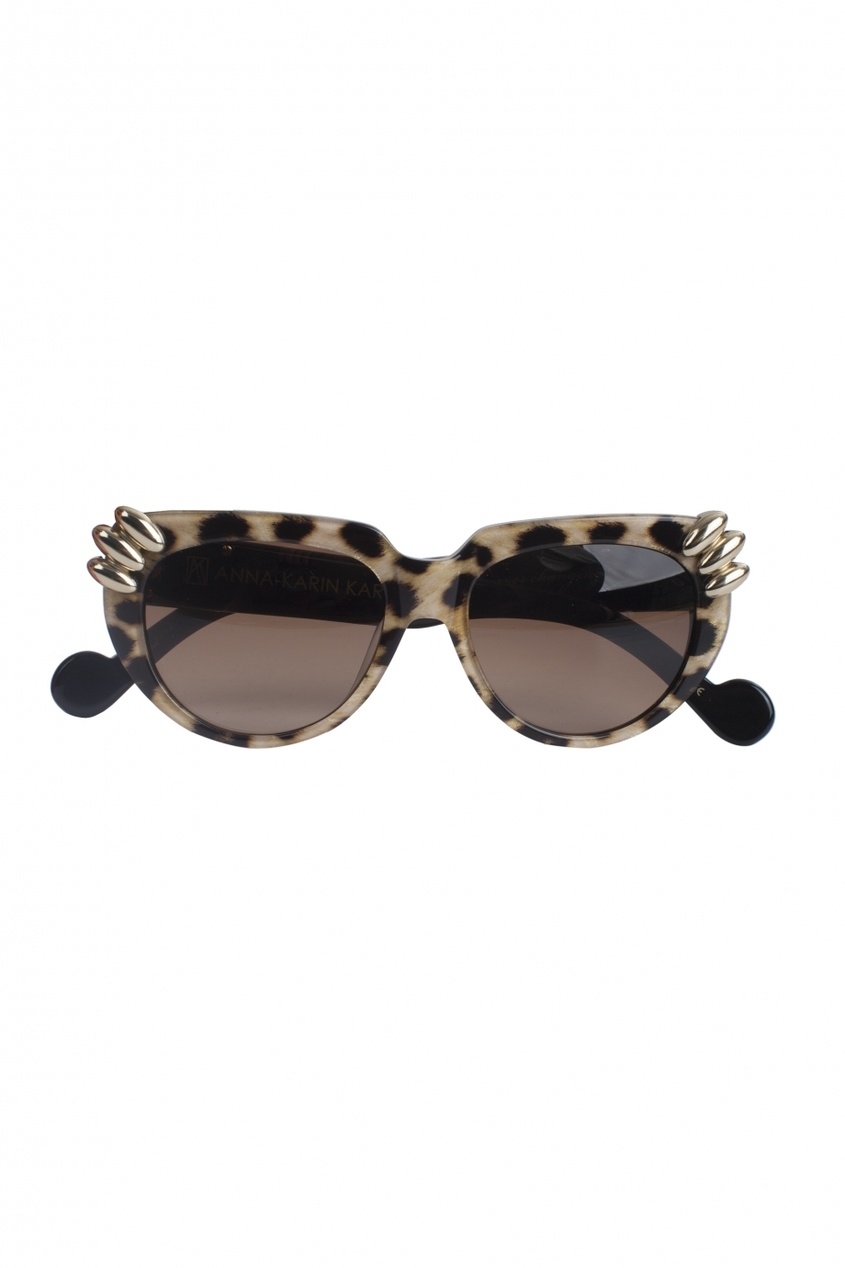Очки Anna-Karin Karlsson — очень яркий аксессуар, для девушек, которые любят коллекционировать оправы. Леопардовый принт в сочетании с круглой формой дополняют позолоченные коготки, которые будто вцепились.