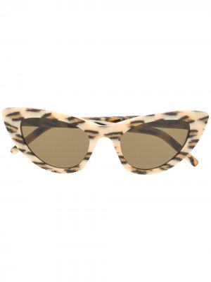 Затемненные линзы, леопардовый принт, оправа «кошачий глаз» и металлический логотип на дужке. Цвет: телесный.