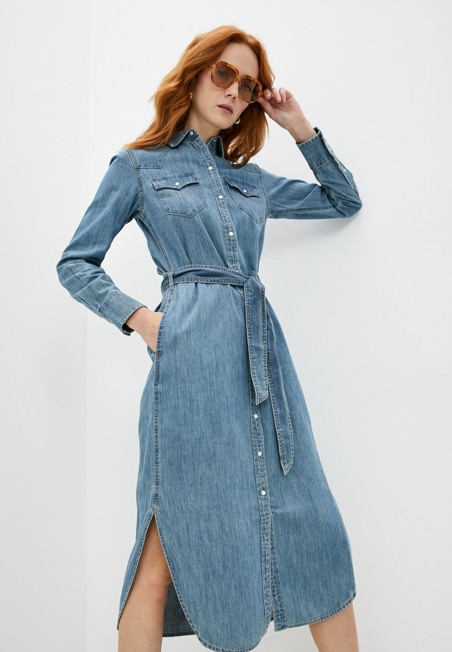 Платье Lauren Ralph Lauren. Цвет: синий. Сезон: Весна-лето 2021.
