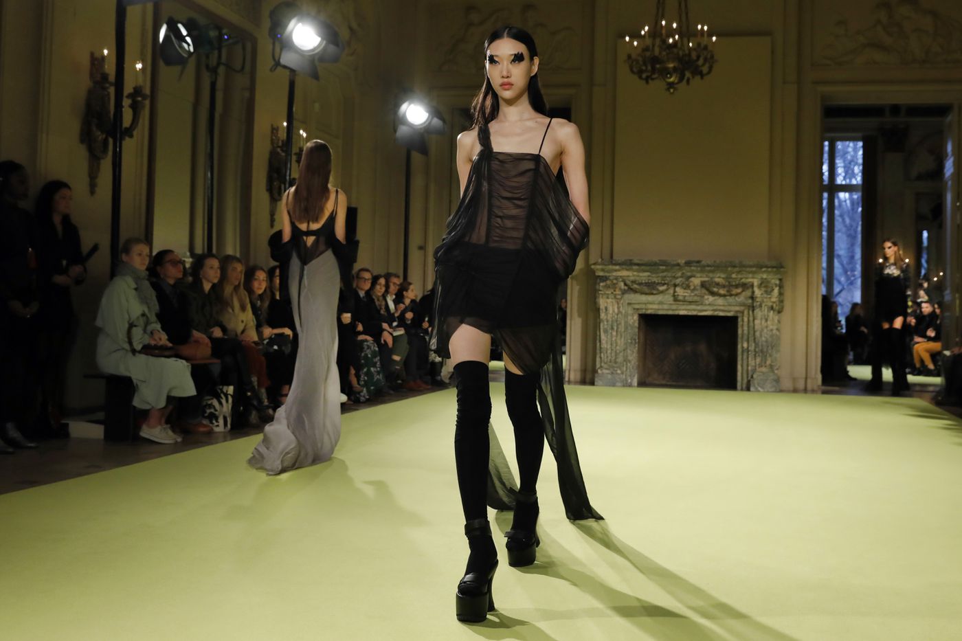 Tadashi Shoji устроили дефиле в постапокалиптических декорациях, на фоне кучи мусора и засохших деревьев.