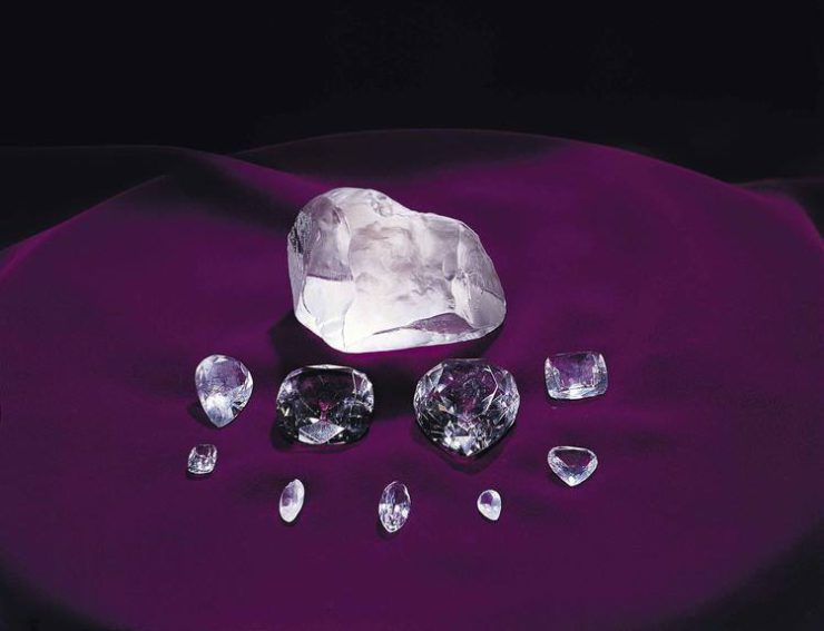 Куллинан нашли чуть больше века назад – в 1905 году, в Южной Африке (шахта Premier Mine). Из-за трещин находку разделили на 9 крупных и 96 мелких камней. У крупнейшей части вес 530,2 карата. Называют ее Куллинан-I или Большой звездой Африки. До 1995 года она считалась крупнейшим ограненным алмазом.