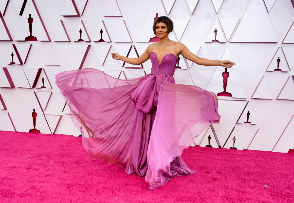 Еще одна ведущая церемонии, американская актриса Холли Берри посетила церемонию в платье цвета фуксия от итальянского бренда Dolce & Gabbana, пишет таблоид Page Six. Издание также отмечает, что ради церемонии актриса изменила прическу, появившись в новом образе.