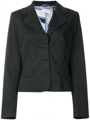 Черный из хлопкового микса облегающий пиджак с карманами от Emilio Pucci Vintage. Пожалуйста, обратите внимание, что винтажный товар не является новым, и поэтому может иметь незначительные дефекты.