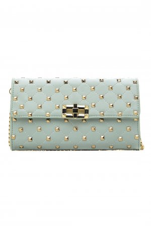 Ультрамодный аксессуар станет выразительным акцентом вашего образа. Эффектная сумка выполнена из искусственной кожи ментолового цвета и дополнена заклёпками из золотистого металла. Подкладка изготовлена.
