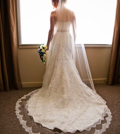 «Церковная» фата (платье со шлейфом) ― вот мы и добрались до фаты, которая прекрасно сочетается со свадебными платьями, имеющими шлейф, но не забудьте, что фата должна быть немного длиннее шлейфа.