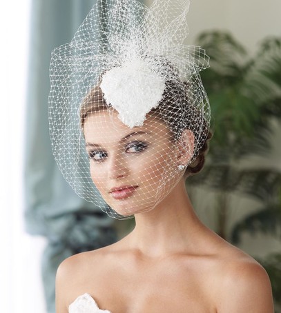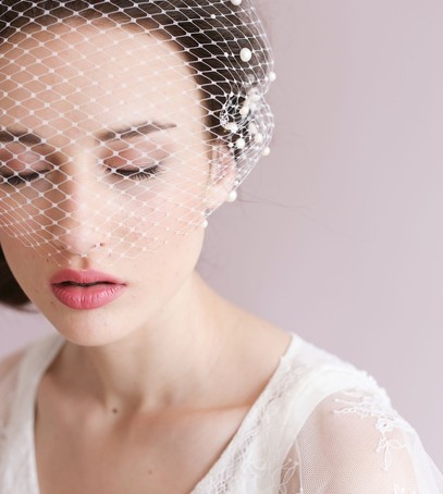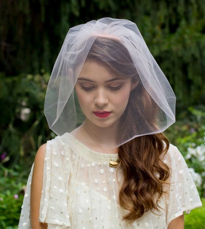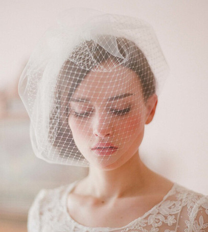 Такой вариант был популярен в начале прошлого века. Фата-вуаль, прикрывающая часть лица, делает образ более загадочным. Выбирать такую стоит, если у вас платье в винтажном стиле, современный свадебный комбинезон или платье мини. Такой вариант могут смело носить невесты с удлиненным лицом — аксессуар визуально сбалансирует пропорции.