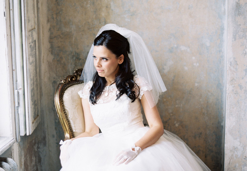 Фата – вуалетка идеально подходит для невест на свадьбе в стиле Винтаж.