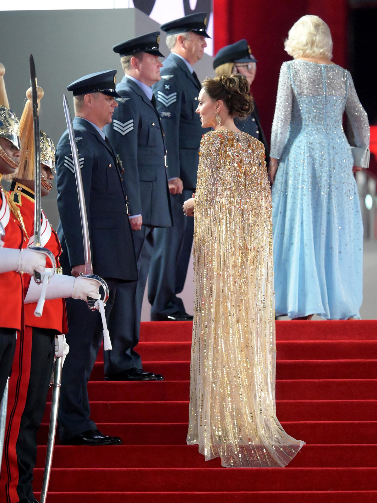 Герцогиня Кембриджская и герцогиня Корнуольская в Королевском Альберт-Холле, на мировой премьере фильма «Не время умирать» в Королевском Альберт-Холле, 28 сентября 2021