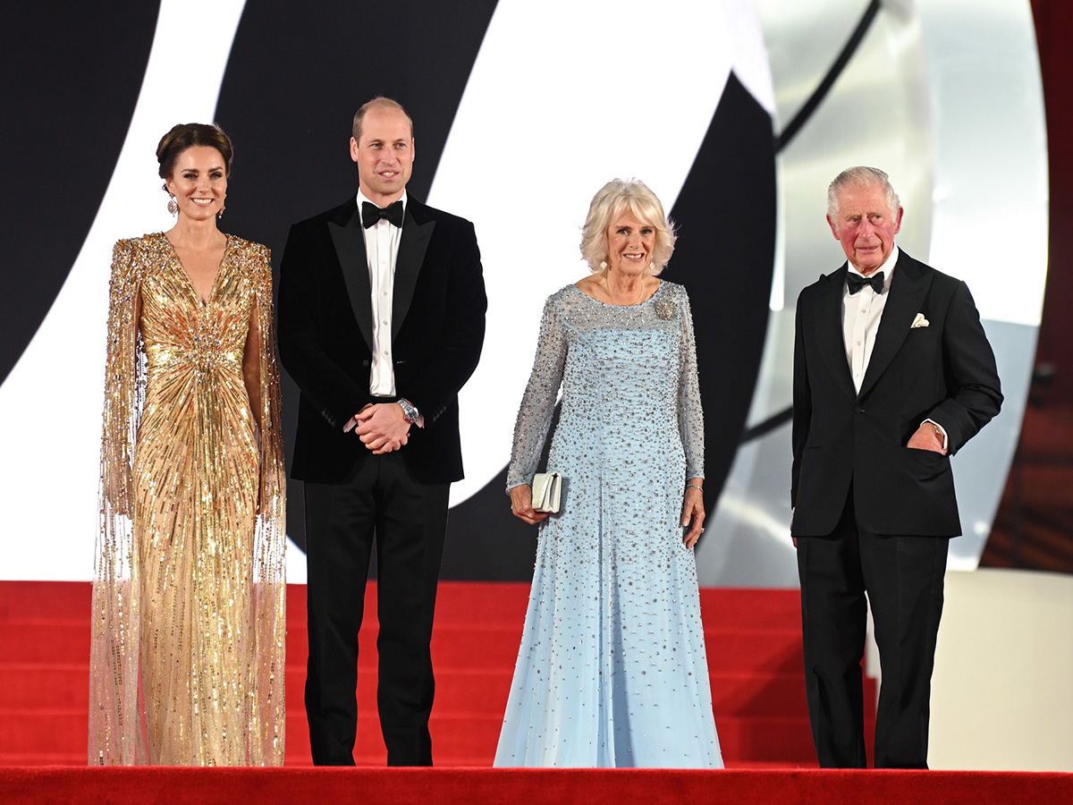 Герцогиня Кембриджская, герцог Кембриджский, герцогиня Корнуольская и принц Уэльский на мировой премьере фильма «Нет времени умирать» в Королевском Альберт-Холле, 28 сентября 2021