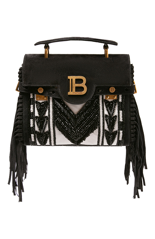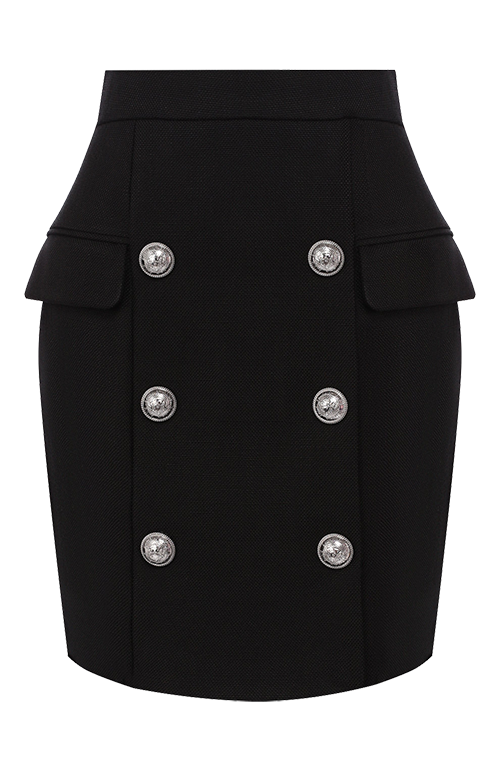 Строгий силуэт — не единственная отличительная черта Balmain. Творения Оливье Рустена легко распознаются по знаковым элементам декора — пуговицам с гравировкой, шипам и монограммам. Это своего рода оммаж дизайнера истории модного дома — детали стали важной составляющей айдентики бренда еще с момента его основания Пьером Бальманом. Поэтому и сегодня юбки, жакеты, свитеры и даже сумки украшены акцентными пуговицами с гербом дома Balmain или монограммой бренда с изображением льва.