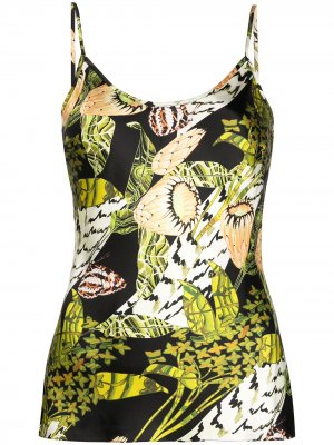 Графичный принт, U-образный вырез, U-образный вырез на спине и тонкие бретели.