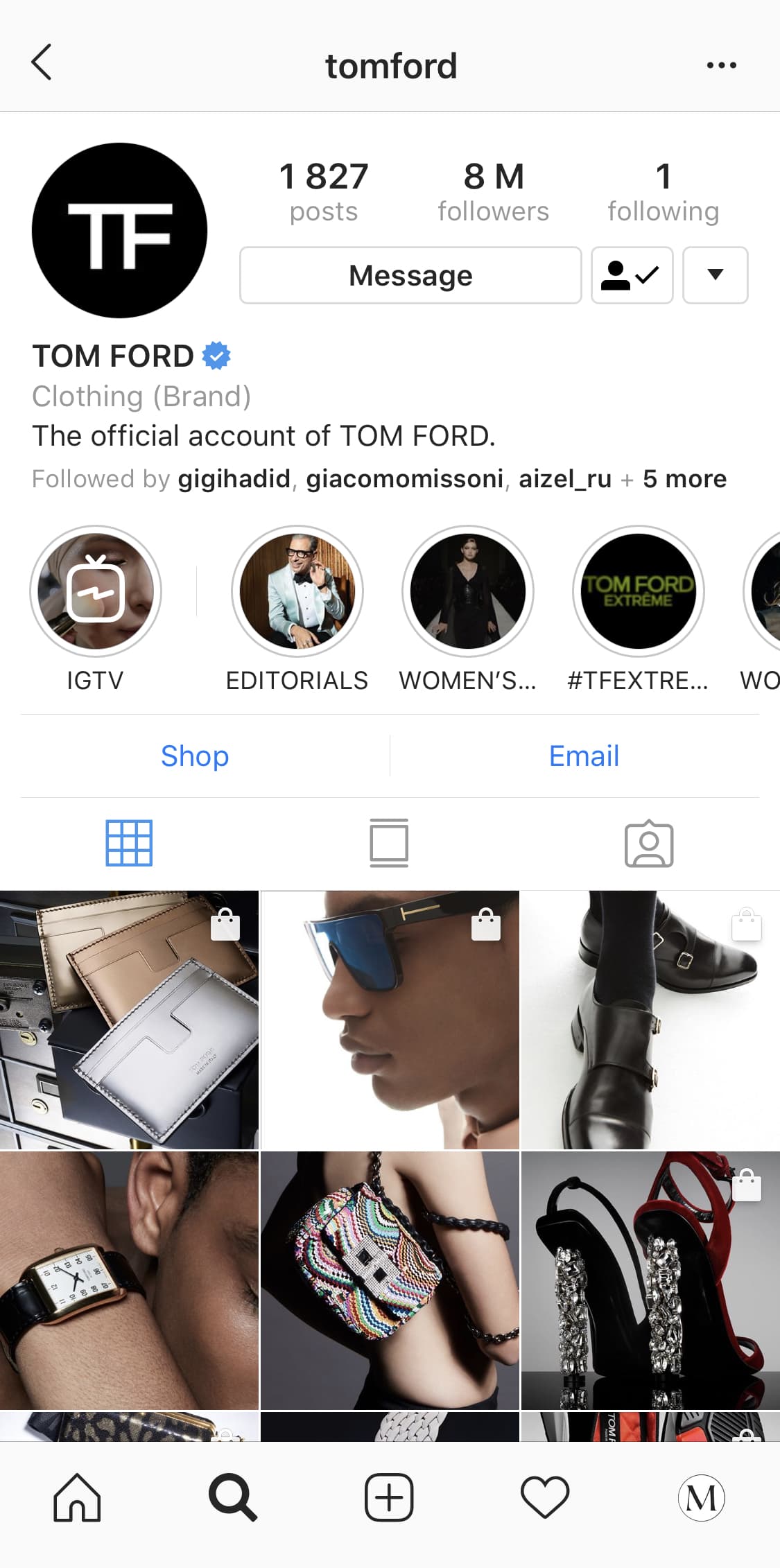 Модный дом Tom Ford выпускает мужскую и женскую одежду prêt-à-porter, сумки, часы, парфюмерию и косметику.