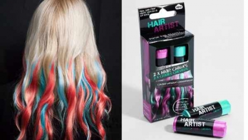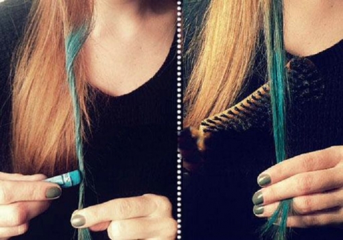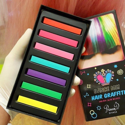 - Окраска волос с помощью мела. Это быстрая, простая и недорогая альтернатива окраски волос. Вы можете это сделать дома самостоятельно и цвета смываются.