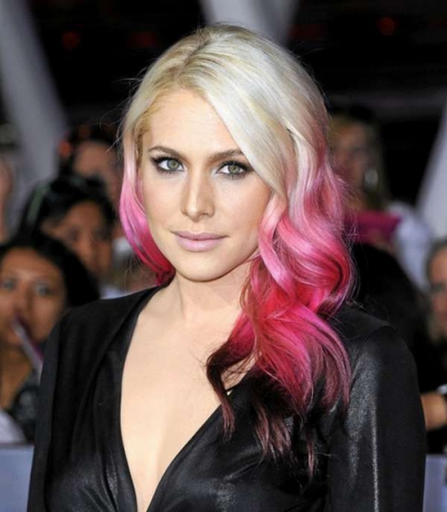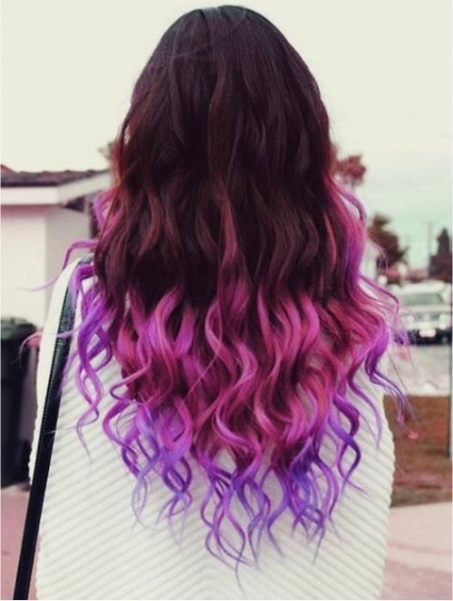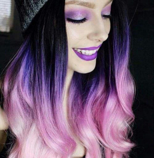 Блондинкам подходит бордовый, розовый и вишневый цвет. Брюнеткам стоит обратить внимание на красно-огненные тона, смесь фиолетового и синего и «галактический» оттенок. Покраску проводят ближе к корням или от середины.