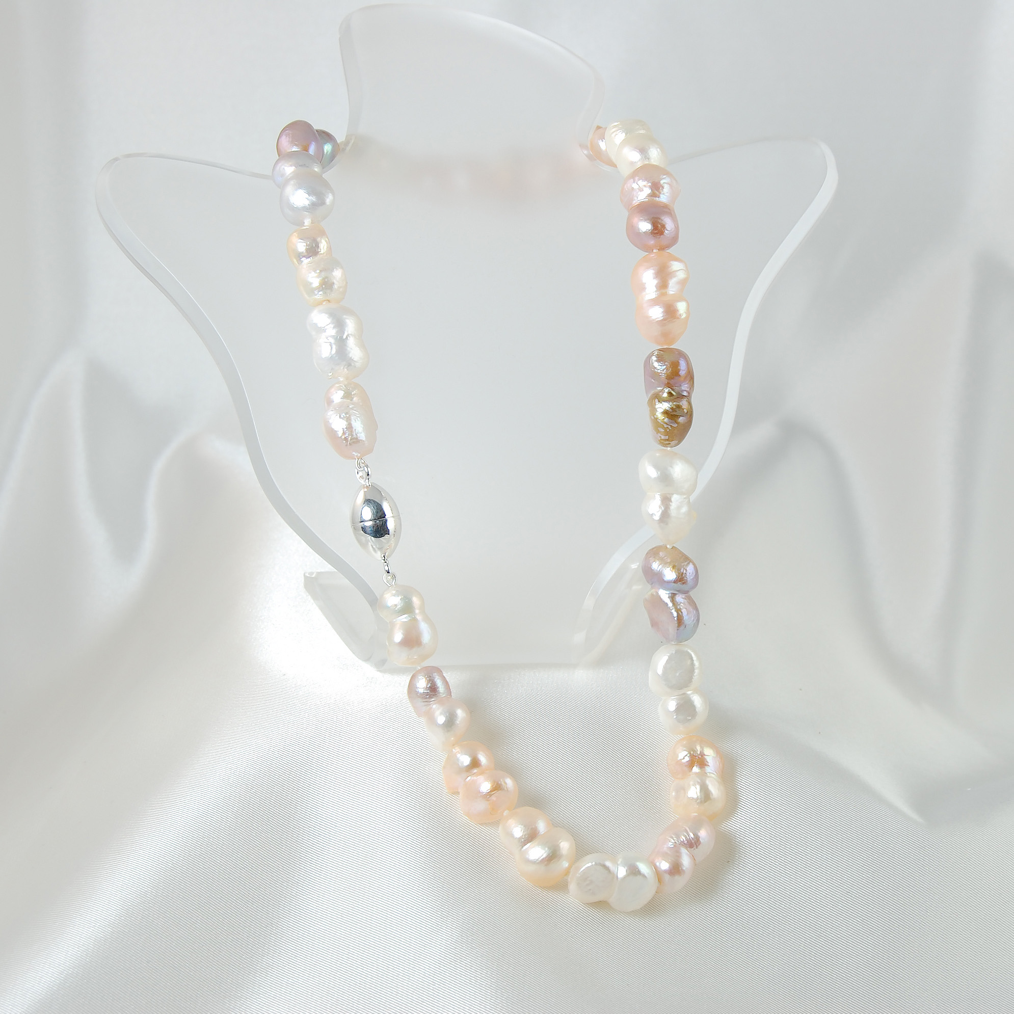 Жемчуг, который мы знаем, имеет круглую форму и бежево-белый оттенок. Барочный жемчуг имеет неправильную форму: может быть продолговатым, скругленным, плоским, угловатым. Но самым ценным жемчугом будет минерал в форме капли. Само название “барокко” говорит нам о нестандартности жемчуга, который может быть розовым, молочным, слегка серым или наоборот получиться в насыщенных цветах, но приглушенных оттенках (желтом, фиолетовом, черном). Барочный жемчуг прекрасно смотрится в любых аксессуарах, но поскольку для богемного стиля есть свои правила, чаще всего минерал инкрустируют в серьги, браслеты и колье.