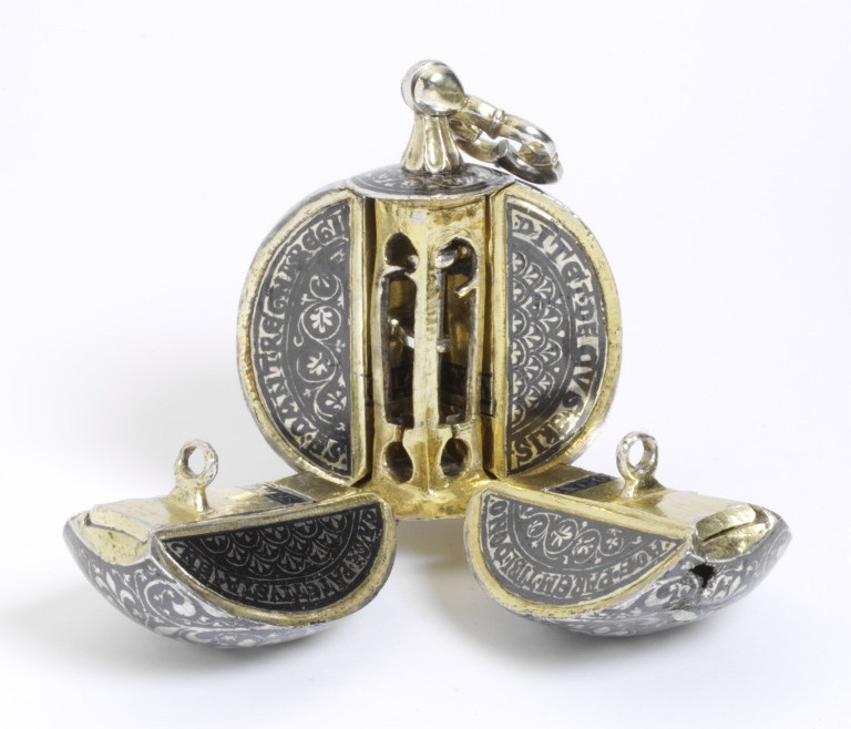 Занятное произведение искусства ароматов — это помандеры ⅩⅤⅠ-ⅩⅤⅡ веков, емкости для хранения твердых благовонных веществ. Считалось, что душистая аура оберегает владельца ароматного сосуда от инфекционных заболеваний, передающихся с «дурным» дыханием. Помандеры традиционно изготавливались из серебра. Сосуд шаровидной формы подобно апельсину разделялся на «дольки», куда и закладывались благовония. Своеобразные флаконы с цепочкой в верхней части принято было носить при себе, например, на кисти руки, на шее или в ладони.