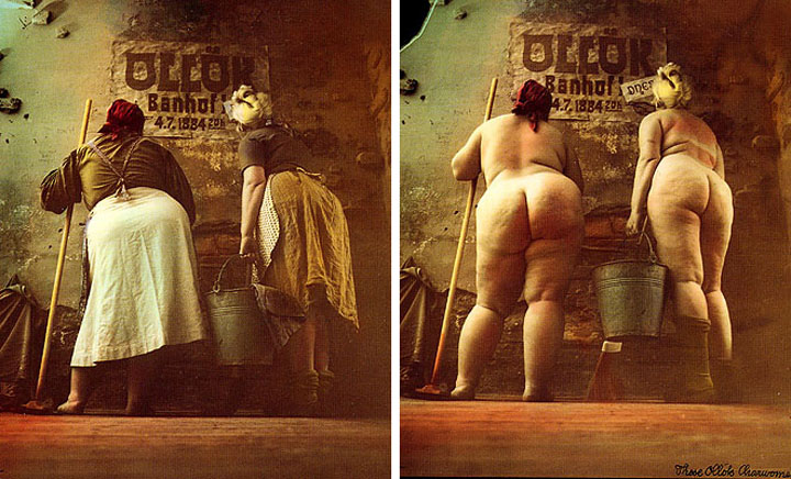 Анекдот я не люблю. Понятно, что пойман тренд, и он введен в эксплуатацию. Маленький «свечной заводик» Яна Саудека. Понятно, почему на выставке в галерее больше раскрашенных, чем черно-белых фотографий: покупают больше то, что понимают.