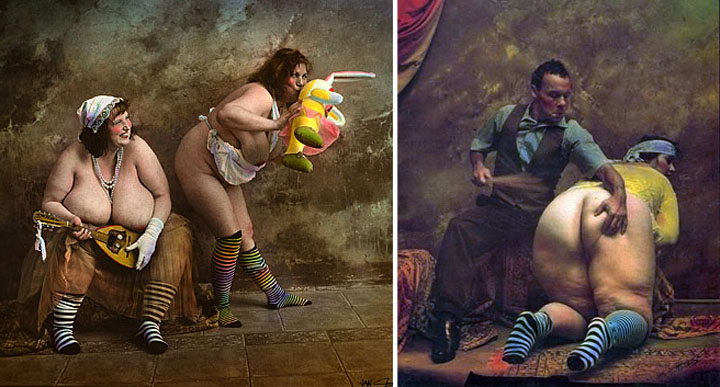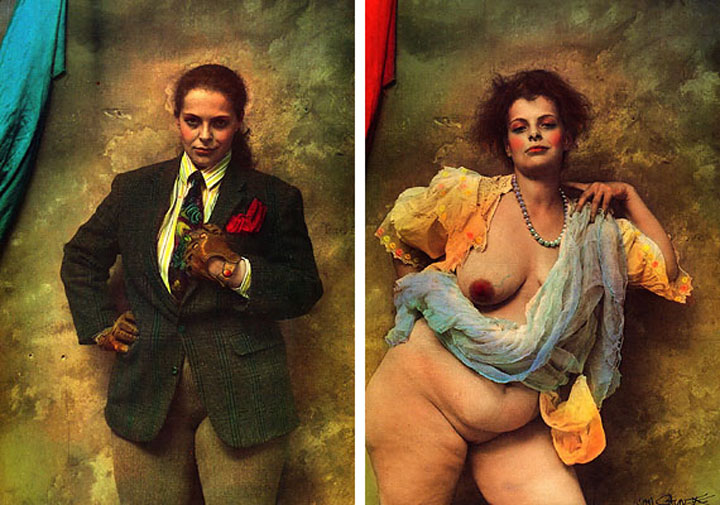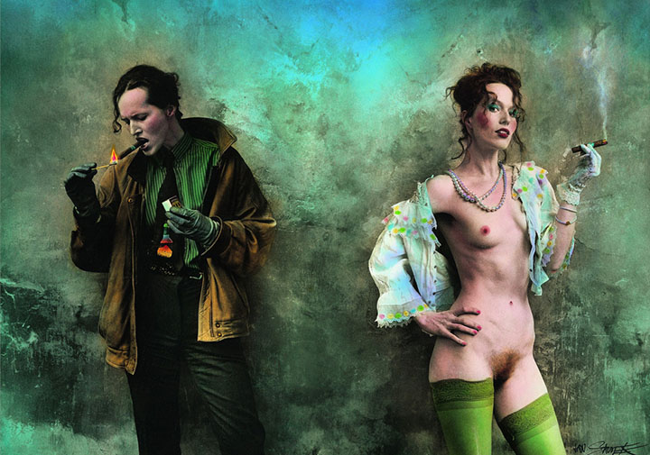 Источники вдохновения Яна Саудека не без основания принято видеть в сюрреализме или классической живописи — он и вправду делает все, чтобы его снимки выглядели не брутальным “мясом”, а изысканной цитатой из некоего романтического прошлого. Правда, кажется, что самым близким первоисточником этих цитаций может оказаться отнюдь не, скажем, Рубенс или Магритт, а старинные порнографические открытки — все эти пожелтевшие, чуть смазанные, забавно церемонные снимки с пышноволосыми и пышнотелыми дамами, раскрывающими свою наготу из-под корсетов, кружев и полосатых чулок. Сами по себе эти снимки давно являются объектом вполне эстетского и платонического культа. Наверное, порнография утрачивает свою прямую функцию и обретает эстетические достоинства отвлеченного искусства не только по мере того, как теряют свою актуальность и становятся достоянием истории былые представления о том, что является рискованным или возбуждающим (в конце концов вряд ли человеческая сексуальность способна претерпевать уж совсем революционные изменения), сколько по мере того, как представленные на них тела исчезают из реальности и остаются только на снимках.