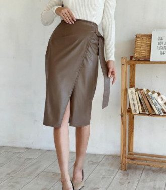 Помимо юбки трапеции в этом году стилисты предлагают обратить внимание на модель «карандаш» с запахом, которые добавят в образ особую изюминку и женственность. Довольно часто такие изделия дизайнеры представляют в совершенно новых и интересных вариантах исполнения.