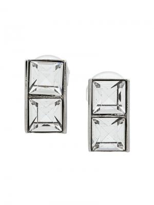 Серебристые из металла и кристаллов Застежка на зажиме, квадратная форма. Пожалуйста, обратите внимание, что винтажный товар не является новым, и поэтому может иметь незначительные дефекты.