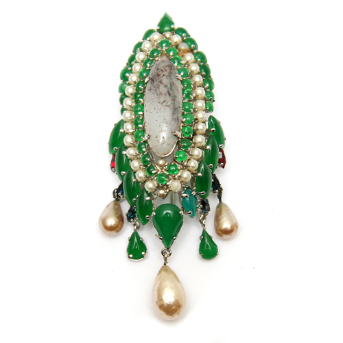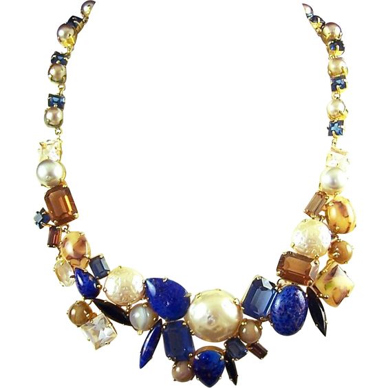 Основной чертой большинства работ дома моды Диора является использование цветных искусственных камней в классической оправе. Созданные им ожерелья , несут на себе отпечаток различных стилей, которые были модными после второй мировой войны.
