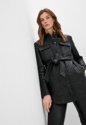 Зернистая текстура, нашивка с логотипом сзади, укороченная длина, классический воротник, застежка на кнопки, нагрудный накладной карман, длинные рукава и манжеты на пуговицах. Цвет: черный.