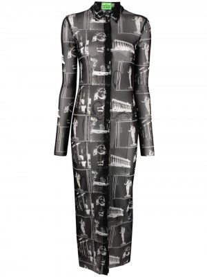 Декоративные швы, классический воротник, планка на пуговицах спереди, рукава с манжетами на пуговицах, полупрозрачный дизайн и без подкладки.