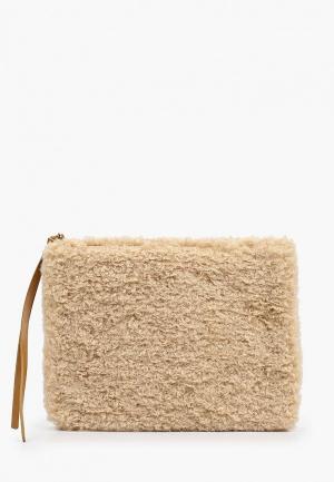 Косметичка Mango. Цвет: бежевый. Материал: искусственный мех. Сезон: Осень-зима 2021/2022.